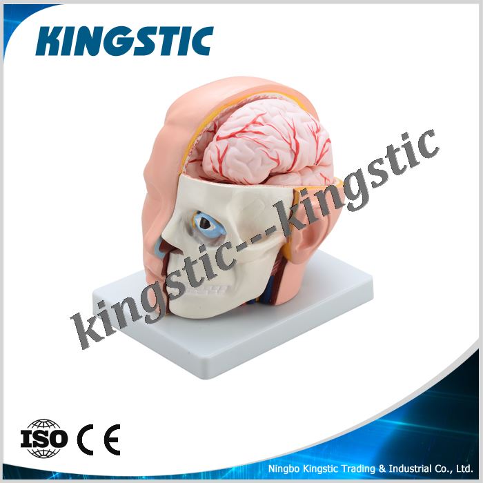 Head model with arteries brain. General view, this model shows deep structure of human head. It helps to learn face skin feature,inner skeleton structure and brain inside the skull. 10 Parts It is easy to learn brain structure with arteries.